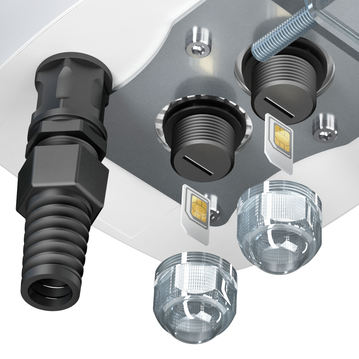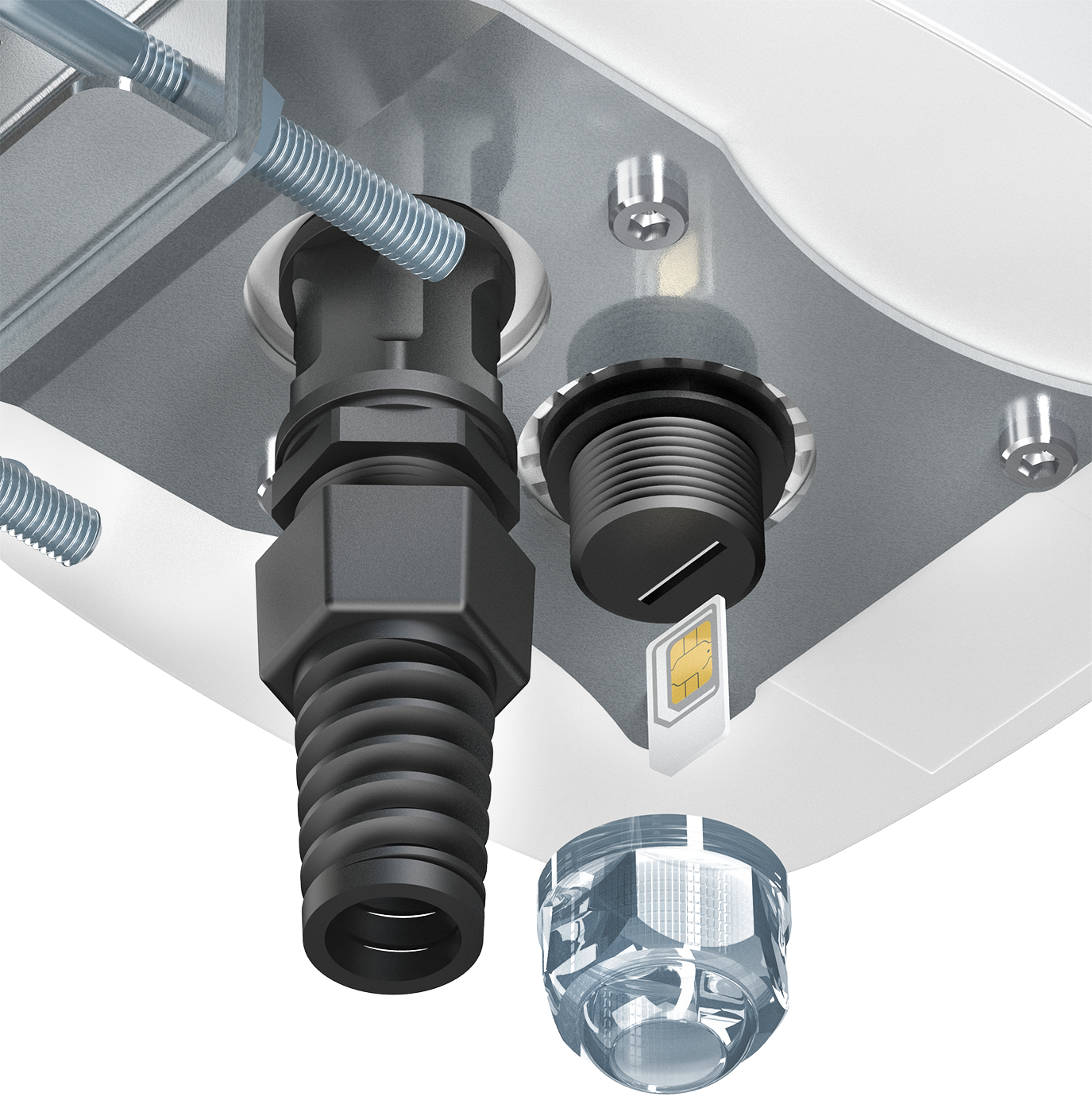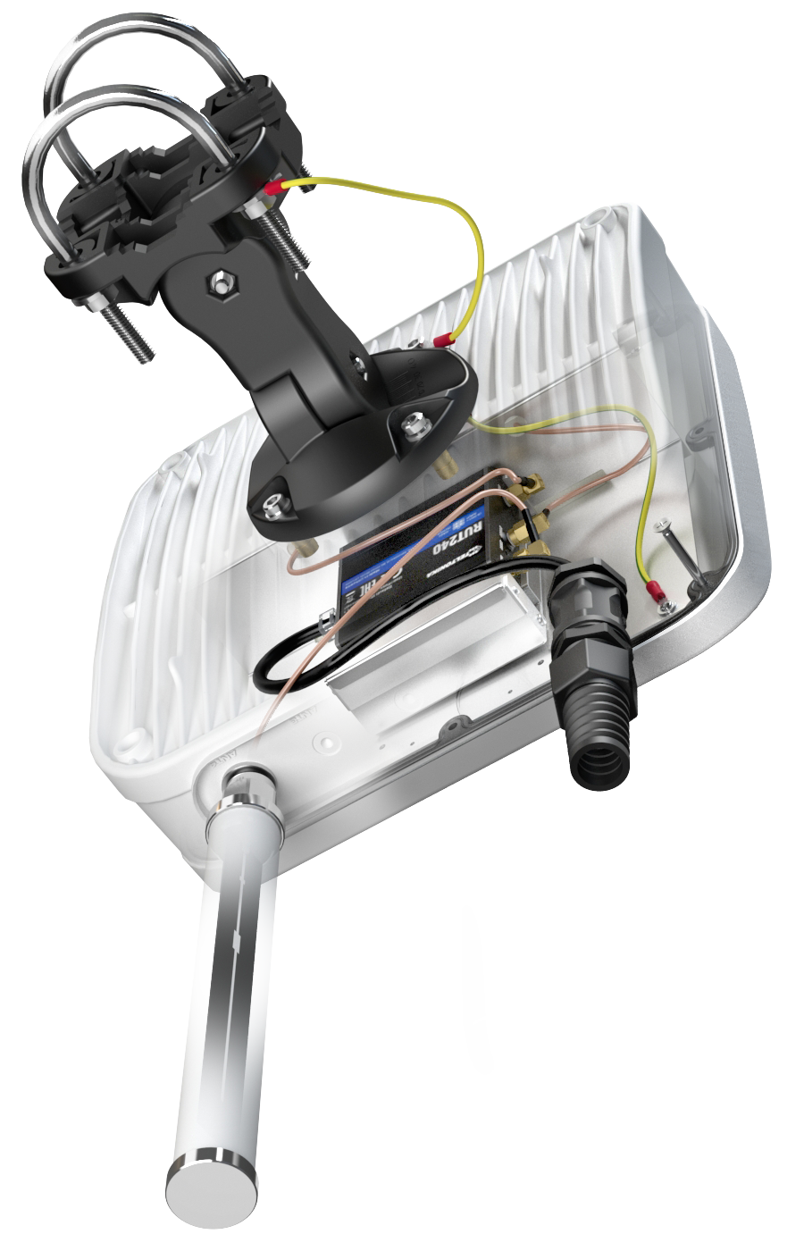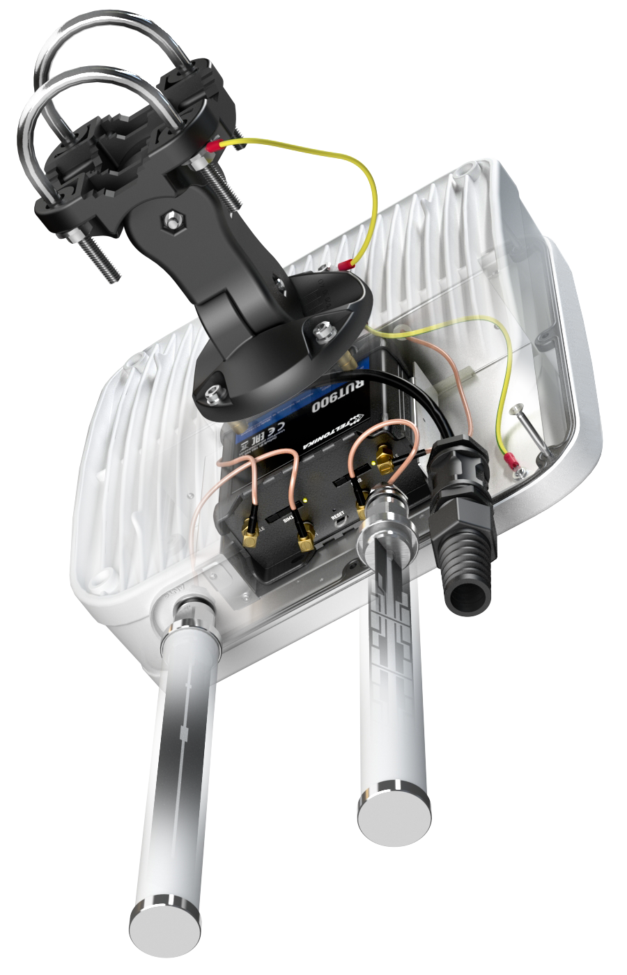 Las antenas QuSpot y QuMax se pueden solicitar con el router Teltonika integrado. En este caso también se incluyen: 1 o 2 SIM card holders (en función del tipo de router) para poder insertar y extraer las SIM desde el exterior sin necesidad de abrir la envolvente de la antena y un inyector PoE pasivo de 24Vdc para poder alimentar el router a través del propio cable Ethernet.