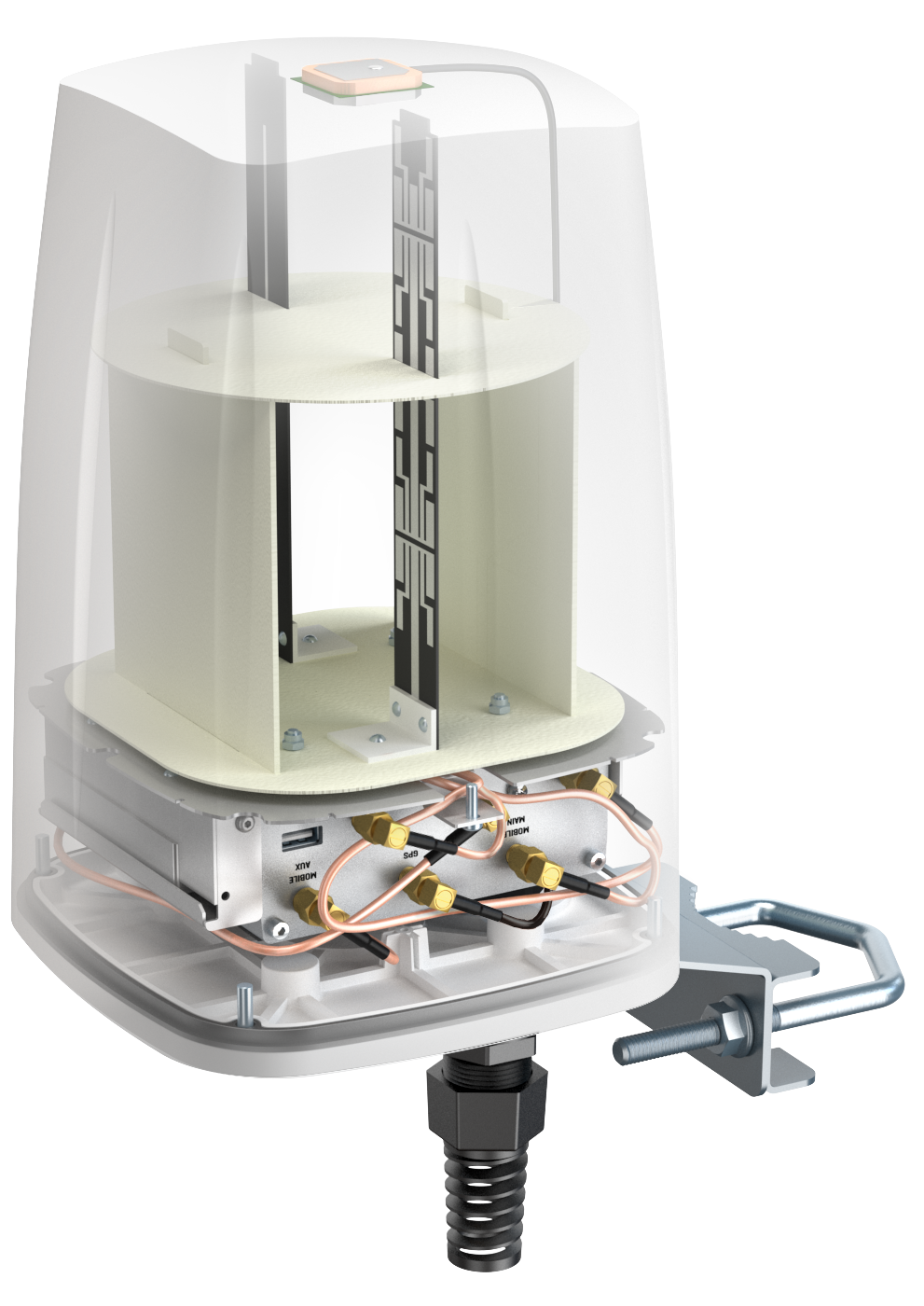 Las antenas QuSpot integran una antena LTE onmidireccional (360º) con una ganancia de entre 2dBi y 4dBi en función de la banda de frecuencias y una antena WiFi también onmidireccional dual band (2.4GHz y 5GHz) con una ganacia de 6-7dBi dentro de una envolvente de material ABS con protección IP67. En aquellos modelos de router con módulo GPS (RUT955, RUX09 y RUTX11) también se incluye una antena GPS.Las antenas QuSpot están especialmente indicadas para su instalación en aplicaciones móviles como vehículos o embarcaciones.